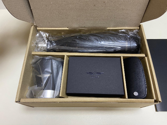 차량을 인수 받으면 큰 박스를 하나 받게 된다. 큰 박스 안에는 번호판, 발판 매트, 악세사리 박스, 트렁크매트, 삼각대, 사용설명서, 차량등록증 커버가 들어있다. 특히 악세사리 박스 안에는 제네시스 차량 구입자를 위한 선물이 들어있다.