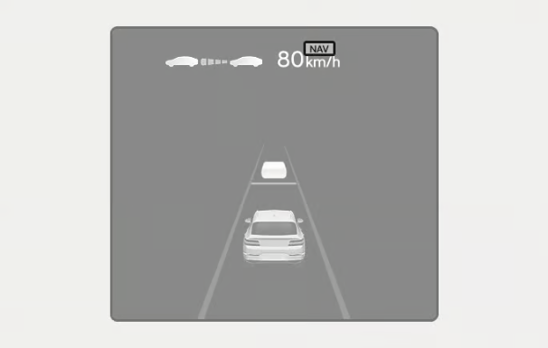 스마트 크루즈 컨트롤 기능이 일시 해제나 경로 재탐색 등으로 제어를 할 수 없는 때는 'NAV' 표시등이 회색으로 표시됩니다.