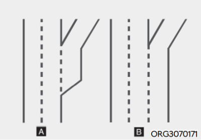 * 내비게이션에서 분기 형태의 진출입로로 경로를 안내하고 마지막 차로로 주행하는 경우, 진출입로 진입 전에 자동으로 감속합니다. 분리 형태의 진출입로라면 진입 전에 자동으로 감속하지 않습니다.