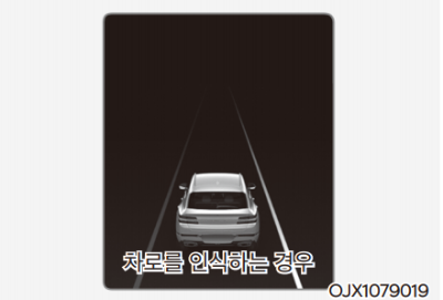 차로 이탈방지 보조 시스템이 켜진 후 차량 속도 60km/h 이상에서 시스템이 차로를 인식하면 인식된 차선 방향의 표시 부분 색상이 회색에서 흰색으로 바뀝니다.