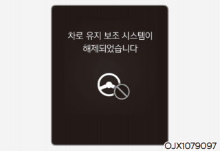 차로 유지 보조 시스템이 조향을 보조하는 도중 운전자가 스티어링 휠에서 일정 시간 손을 놓고 주행할 경우 시스템은 핸즈 오프 경고가 표시됩니다.