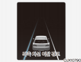 차로 이탈 경고 기능은 차로 이탈방지 보조 시스템에서 조향 기능을 수행하지 않고 차량이 차로를 이탈할 경우 경고만 제공하는 기능입니다. 차량 앞쪽 바퀴가 차선에 닿을 경우 이탈한 차선을 알리며 차로를 이탈하지 않도록 합니다.