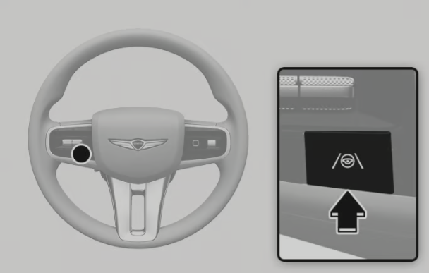 시동이 켜진 상태에서 스티어링 휠의 '차로 주행 보조 버튼'을 누르면 기능이 켜집니다.