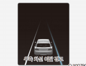 차로 이탈방지 보조 시스템 작동 중 조향력의 부족으로 차량이 차로를 이탈할 경우 이탈한 방향의 차선이 깜빡이고 경고음이 울린다.