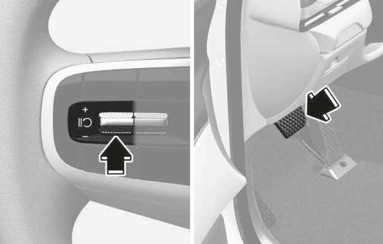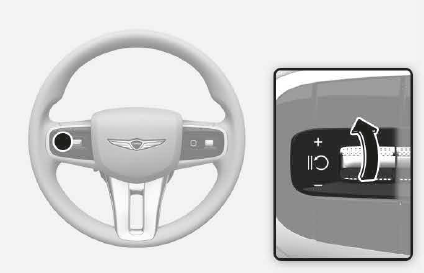 설정 속도를 증가시키기 위해서는 스티어링 휠에 위치한 버튼을 '+' 방향인 위로 올리면 됩니다.