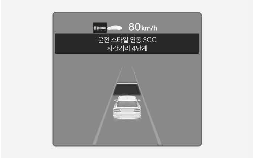 운전 스타일 연동 기능이 적용되면 차량이 평소 학습한 운전자의 주행 성향(차간거리, 가속 강도, 반응 속도)을 반영하여 스마트 크루즈 컨트롤 기능이 작동됩니다.