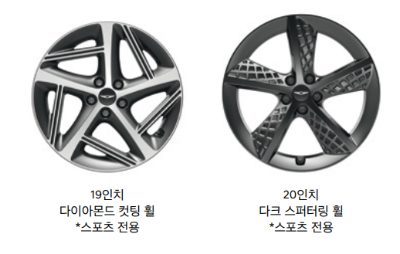 | 타이어 & 휠 | 19인치 콘티넨탈 타이어&휠 | 20인치 피렐리 타이어 & 스포츠 전용 휠 | 20인치 미쉐린 썸머 타이어 & 스포츠 전용 휠 |