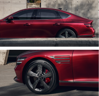 또한, 와이드하고 과감한 리어 범퍼, 블랙 베젤 헤드램프와 G-MATRIX 패턴의 전용 20인치 휠(추가 옵션)로 역동적인 디자인이 돋보인다.