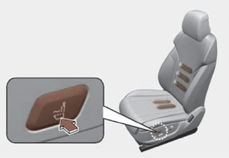 컴포트 스트레칭 기능은 운전자의 골반과 허리의 피로를 완화하기 위해 시트를 움직일 수 있는 기능이다. 좌석에 있는 컴포트 스트레칭 버튼을 누를 때마다 아래의 순서대로 모드를 변경하거나 기능을 끌 수 있다.