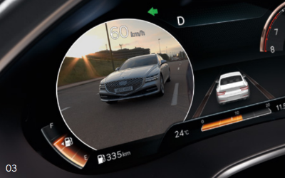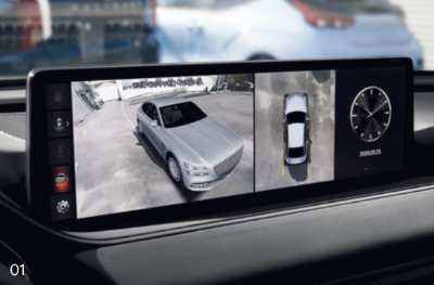 하이테크 패키지 옵션을 선택할 경우 12.3인치 3D 클러스터를 통해 좌후방 영상은 좌측 계기판에, 우후방 영상은 우측 계기판에 표시된다. 하이테크 패키지 옵션을 선택하지 않을 경우 8인치 TFT LCD 계기판 오른쪽의 화면에 후측방(좌/우)의 영상이 모두 표시된다.