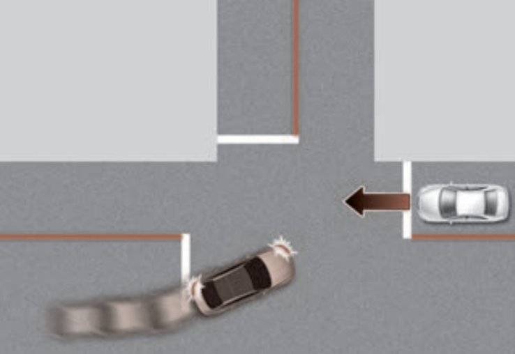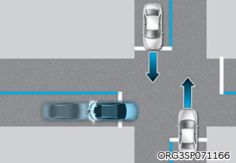 교차로 직진 시 좌우 방향에서 접근하는 차량과의 충돌 위험이 판단되면 충돌하지 않도록 제동을 돕는다