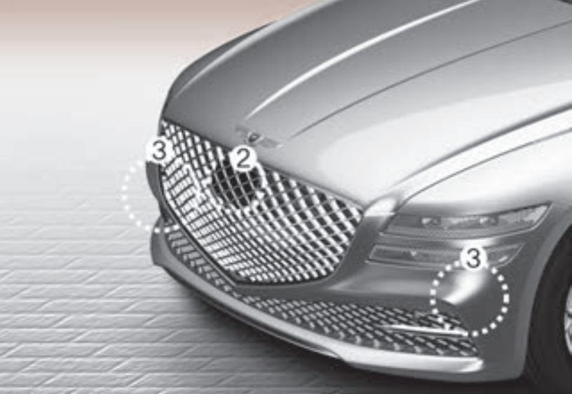 드라이빙 어시스턴스 패키지 2 옵션을 선택하면 차량 앞범퍼에 2개의 전측방 레이더가 장착된다. 전측방 레이더를 통해 전측방의 차량을 인식할 수 있게 된다.