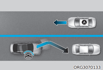 차로 변경 시 맞은편에서 다가오는 차량과의 충돌 위험이 판단되면 충돌하지 않도록 회피 조향을 돕는다.
