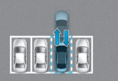 서라운드 뷰 모니터의 탑 뷰 화면에 탐색한 주차 공간 위치를 표시한다. 주변에 주차된 차량이 있는 경우에만 주차 공간 탐색이 가능하다. 주행 후에 생긴 빈자리 또는 아직 주행하지 않은 차량 앞쪽의 빈 공간은 주차 공간으로 탐색할 수 없다.