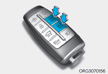 차량 시동이 꺼진 상태에서 스마트 키로 도어 잠금 후 원격 시동 버튼을 길게 누르면 원격 시동이 걸린다. 원격 전/후진 기능 또는 원격 스마트 주차 기능 작동 중 원격 시동 버튼을 누르면 원격 스마트 주차 보조 작동을 종료한다.