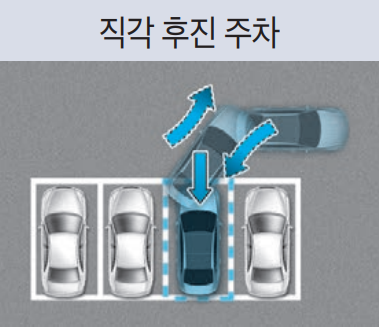 직각 (좌측 / 우측), 평행 (좌측 / 우측) 4가지 유형 중 운전자가 선택한 주차 기능이 작동된다. 정차한 상태에서 인포테인먼트 시스템 화면에 표시한 주차 공간 탐색 결과를 터치하거나 중앙 집중키를 조작하여 원하는 주차 유형을 선택할 수 있다.