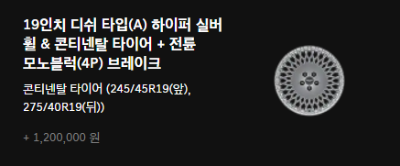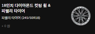 | 18인치 피렐리 타이어 & 다이아몬드 컷팅 휠 | 19인치 콘티넨탈 타이어 & 하이퍼 실버 휠 | 20인치 피렐리 타이어 & 스퍼터링 휠 | |