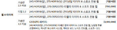 | 가솔린 2.5 터보 + 스포츠 패키지 선택 |