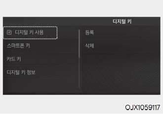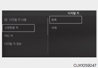 ⑤ 인포테인먼트 시스템에서 설정 → 차량 → 디지털 키 → 디지털 키 사용을 선택한 후 스마트폰 키를 등록한다.