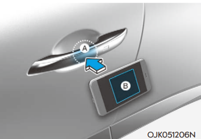 스마트폰을 차량 도어 손잡이에 터치하여 도어 잠금/ 잠금 해제가 가능하며, 차량 내 실내 인증 패드 (무선 충전 패드) 위에 올려놓고 시동을 걸 수 있다.