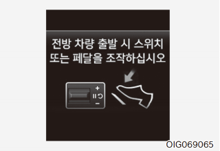 30km/h 이하에서 전방 차량과의 거리 제어 중, 전방 차량이 옆 차선으로 감속하면서 사라지면 경고음이 울리면서 계기판에 경고문을 표시한다. 새롭게 나타난 정차 차량이나 물체가 있으면 충돌할 수 있으니 전방 도로 상황 및 주행 상태를 확인하고 필요하면 브레이크 페달을 밟아 속도를 조절해야 한다.