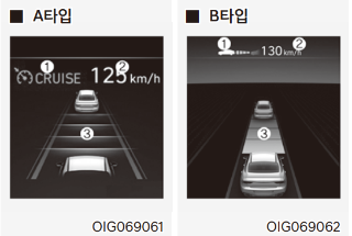 ② 계기판에 설정속도 및 차간거리 표시등이 켜지면서 설정한 속도와 거리를 유지한다.