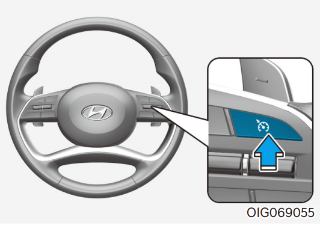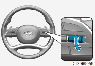 스티어링 휠의 - 스위치를 짧게 당겨 내릴 때 마다 1km/h씩 설정 속도가 감소한다.