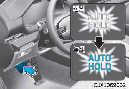 ① 브레이크 페달을 밟은 상태에서 Auto Hold 버튼을 누른다.