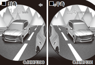 하이테크 패키지 옵션을 선택할 경우 12.3인치 3D 클러스터를 통해 왼쪽 후측방 영상은 좌측 계기판, 오른쪽 후측방 영상은 우측 계기판에 표시된다. 위의 옵션을 선택하지 않을 경우 8인치 클러스터 오른쪽 화면에 좌우 후측방 영상이 모두 표시된다.