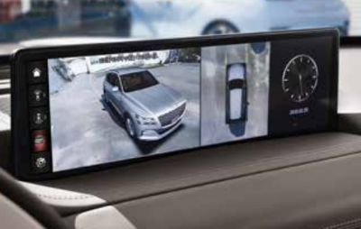 서라운드 뷰 모니터는 제네시스 GV80 차량에 장착된 카메라를 이용하며, 차량 주변의 상황을 360도 3D 뷰 및 다양한 영상으로 인포테인먼트 시스템을 통해 표시하여 안전한 주차에 도움이 되는 기능이다.