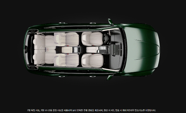 6인승 선택 시 2열 독립 시트와 고급감을 강화한 센터 콘솔이 적용되어 편의성을 높였으며 탑승자들에게 안락하고 편리한 탑승 경험을 제공한다.