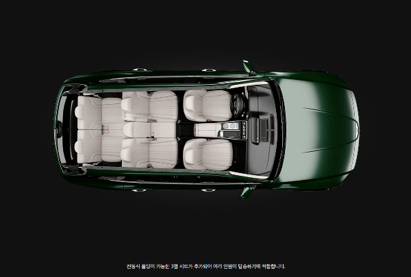 7인승은 100만 원으로 기본 모델에서 3열이 추가 적용된다. 3열은 5:5 시트 전동 폴딩, 3열 에어벤트 기능이 추가 적용된다. 7인승의 3열은 6인승과 마찬가지로 스위치로 시트를 접고 펼 수 있는 기능이 적용된다. 또한 3열 에어벤트 기능이 추가되어 3열에서도 에어컨이 나와 쾌적한 탑승이 가능하다.