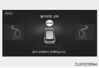 운전자는 인포테인먼트 시스템 화면의 출차 방향을 터치하거나 중앙 집중키를 조작하여 원하는 출차 방향을 선택한다.