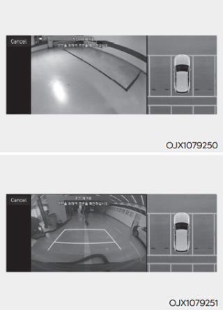 원격 스마트 주차 보조는 탐색한 주차 공간을 인포테인먼트 시스템 화면에 표시하며, 서라운드 뷰 모니터의 탑 뷰 화면에 탐색한 주차 공간 위치를 표시한다.