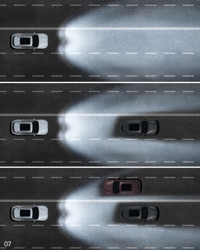 하이빔 보조 및 지능형 헤드램프는 야간 운전 시 운전자의 시야 확보를 위한 기능으로 그 목적이 같다. 하이빔 보조 기능은 앞쪽의 광원 인식을 통해 전체 등을 하향으로 변경하는 반면, 지능형 헤드램프의 경우 광원이 인식된 부분의 등만 부분적으로 하향으로 변경되어 운전자의 시야 확보에 도움이 된다. 지능형 해드램프는 야간 운전이 많은 운전자에게 큰 도움이 되는 기능이다.