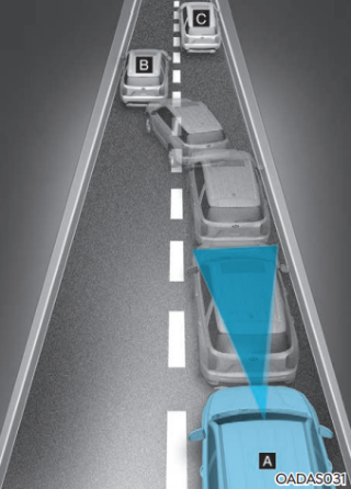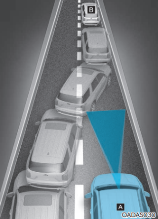 옆 차로의 차량이 자차와 같은 차로로 차로를 변경할 때 센서의 감지 범위 안으로 들어올 때까지 전방의 차량을 인식하지 못할 수 있다. 특히 갑자기 끼어드는 차량을 인식하지 못할 때 위험할 수 있기 때문에 주의해야 한다.