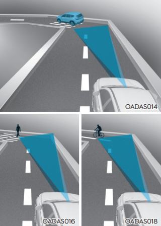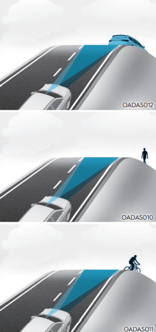 오르막길이나 내리막길에서는 전방에 있는 차량, 보행자 및 자전거 탑승자를 인식하지 못하여 기능이 작동하지 않을 수 있다. 또한 차량, 보행자 및 자전거 탑승자를 갑자기 인식하여 속도가 빠르게 감속할 수 있어 주의해야 한다.