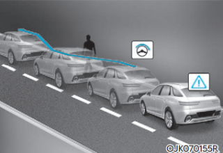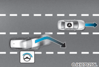 차로 변경 시 옆 차로의 선행 차량과의 충돌 위험이 판단되면 충돌하지 않도록 조향을 돕는다.