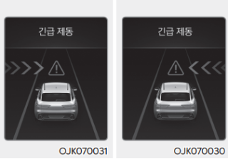 회피 조향 보조 기능은 긴급 조향으로 경고 및 제어를 한다.