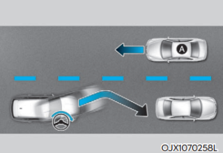 차로 변경 시 맞은편에서 다가오는 차량과의 충돌 위험이 판단되면 충돌하지 않도록 회피 조향을 돕는다.