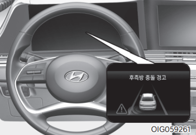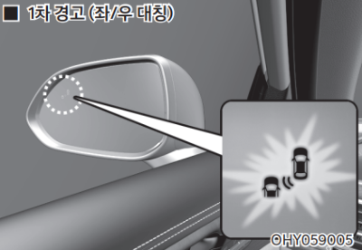 | 충돌 경고 | 후측방 충돌 경고 시스 템이 켜지고 작동 준비 상태가 된다. 후측방으로 차량이 접근하면 경고음이 작동한다. |
