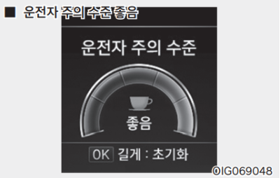 운전자 주의 수준이 1단계 미만으로 떨어질 경우 계기판에 휴식 권유 문구를 표시하고 경고음이 울린다. 운전자의 운전 스타일 및 습관에 따라 피곤함을 느끼지 않는 상황에서도 휴식을 권유할 수 있다.