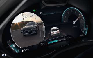 이외에도 운전자 보조 시스템은 기본적으로 계기판과 헤드업 디스플레이에서 확인할 수 있다. 증강현실 내비게이션이 적용되면 인포테인먼트 시스템을 통해서도 스마트 크루즈 정보, 전방 차량 출발 알림 등의 운전자 보조 시스템을 확인할 수 있게 되는 장점이 있다.