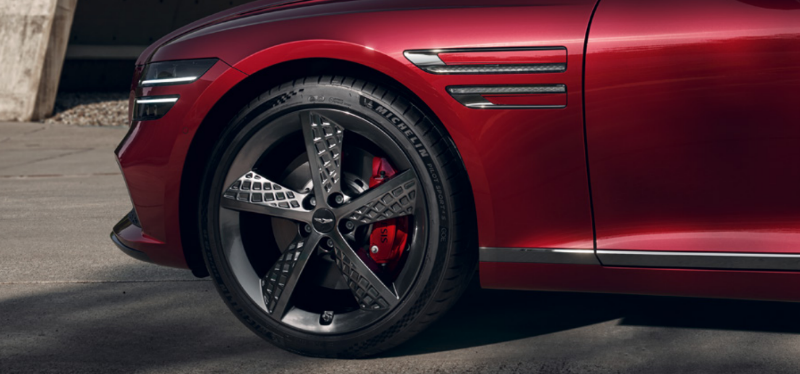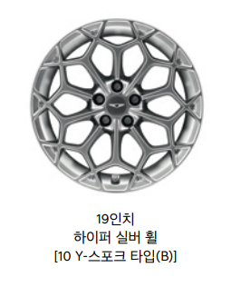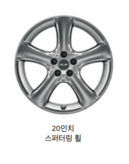 제네시스 G80 가솔린 3.5 터보 옵션을 선택하면 19인치 콘티넨탈 타이어 & 하이퍼 실버 휠이 기본 적용된다. 19인치 휠은 디쉬 타입 A와 10 Y스포츠 타입 B 중에 선택이 가능하다. 70만 원을 추가할 경우 20인치 피렐리 타이어 & 스퍼터링 휠이 적용된다.