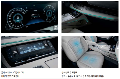 스마트폰 무선충전 후측방 모니터 서라운드 뷰 모니터 운전석 공조 연동 자동제어 |