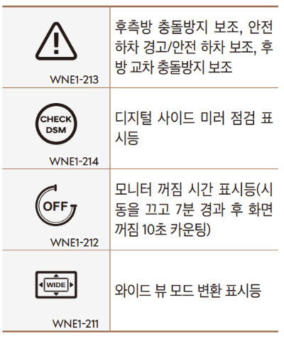 도어가 열리거나 디지털 사이드 미러가 펴지며, 디지털 사이드 미러 모니터가 켜진다. 디지털 사이드 미러를 통해 아래의 표의 정보를 확인할 수 있다.