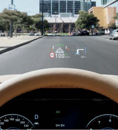 그랜저 헤드업 디스플레이는 100만 원에 추가 가능하다. 헤드업 디스플레이는 운전자 전면 유리창에 계기판 및 내비게이션의 주요 정 보를 표시하여 운전자의 시선을 분산시키지 않고 정보를 제공하는 편의 장치이다.