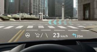 아이오닉 5 롱레인지 프레스티지 트림에만 적용되는 편의 기능은 증강현실 헤드업 디스플레이 기능이다. 제네시스 GV60에서 헤드업 디스플레이 옵션 (130만 원)을 별도 추가해야 한다. 증강현실 헤드업 디스플레이는 주행에 필요한 정보를 증강현실로 보여주어 보다 편리한 주행이 가능하게 한다.
