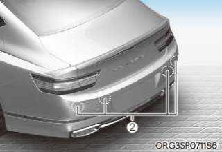 후방 초음파 센서는 뒤 범퍼 내부에 장착되어 후방 물 체를 감지하는 센서이다. 후방 초음파 센서에 눈, 비, 이물질 등이 묻으면 후방 주차 충돌방지 보조가 정상적으로 작동하지 않을 수 있다. 항상 뒤 범퍼를 깨끗하게 유지해야 한다.