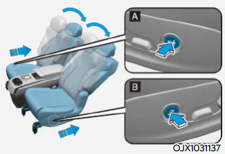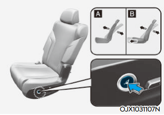 2열 컴포트 패키지 옵션을 추가하면 2열 좌석을 전동식으로 이용할 수 있다. 전/후 위치 조절, 등받이 각도 조절은 아래 그림과 같이 좌석 사이드에 위치한 조절 스위치를 앞뒤로 밀거나 당겨 조절 가능하다.